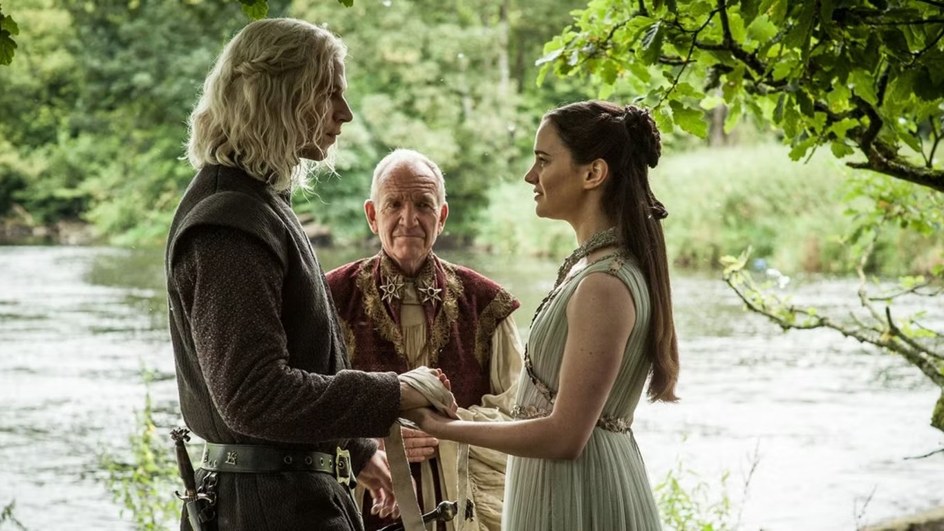 One of the most tragic love stories in the TV Show. They met during the war. He was the King of the North, and she was a noble lady who worked as a healer, caring for the wounded. And feelings flared up between them (although at that time, he was betrothed to another). Despite the warnings from his mother, Robb secretly married Talisa. But then, circumstances developed in such a way that Robb was forced to ask for help from the father of the girl to whom he was originally betrothed. And he supposedly agreed, but with several conditions (among which the groom would be Robb's uncle). But the wedding turned out to be a trap, during which Talisa (who was pregnant at the time) was killed by stabbing in the stomach, and she died in her husband's arms, bleeding to death. And then Robb himself, his mother, and their entire army were killed, and the wedding itself went down in history as the "Red Wedding".