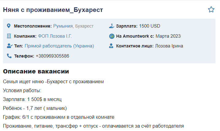 А от в Бухаресті шукають няню для догляду за хлопчиком 1,7 року. Потрібно буде займатися розвитком дитини відповідно до віку, а також допомагати по дому: прибирати, прати, прасувати, готувати їжу для дитини, а також доглядати за дитячими речами.