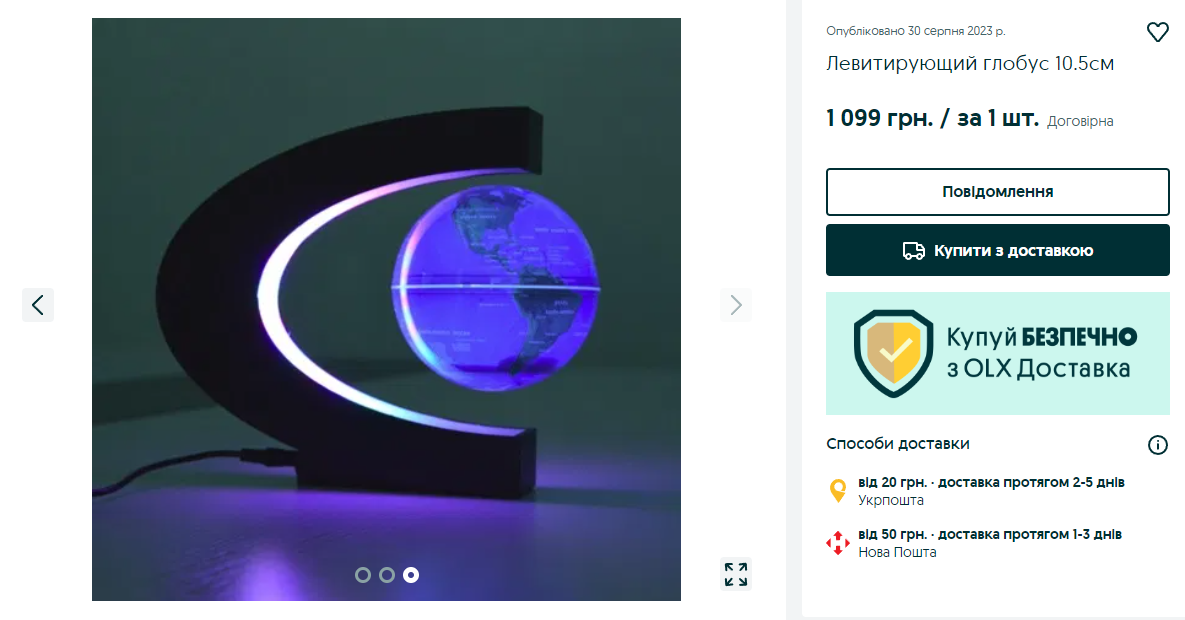 Коштує "Левітуючий глобус" 1099 грн.