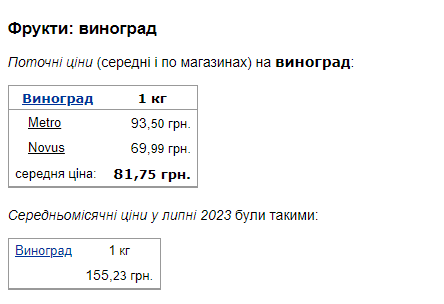 Ціни на виноград