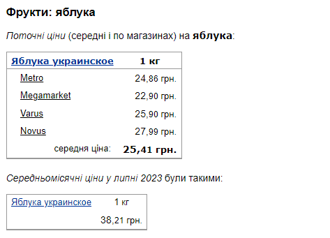 Середня ціна за 1 кг яблук у липні становила 38,21 грн.