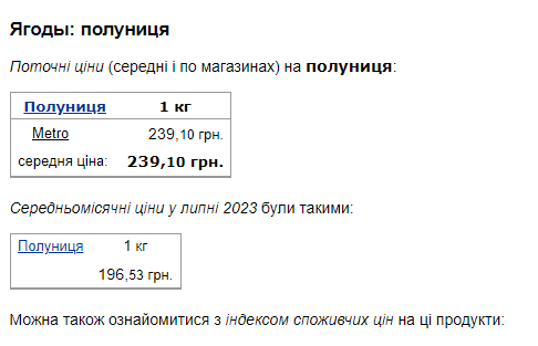 Ціни на полуницю