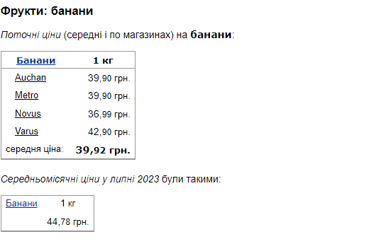 Середня ціна за 1 кг бананів у липні становила 44,78 грн.