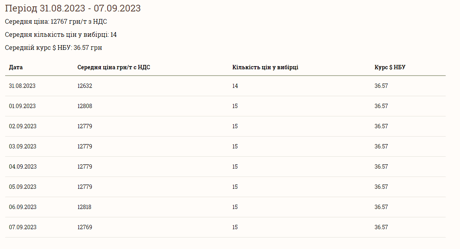 Станом на 8 вересня середня ціна на ріпак в Україні становить 12769 грн за тонну разом з ПДВ.