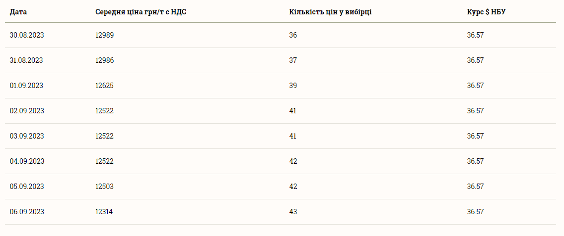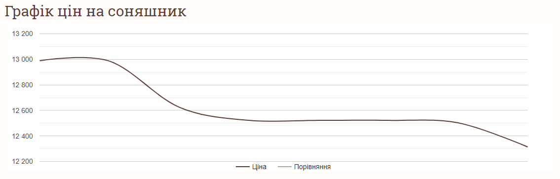 При цьому ціна на соняшник упродовж останніх днів тільки падала. Так, у середу, 30 серпня, середня вартість тонни соняшнику становила 12989 грн і відтоді практично постійно падала. Спочатку до 12986 грн за тонну, згодом до 12522 грн і, зрештою, до 12314 грн за тонну, що становить мінімум за тиждень.