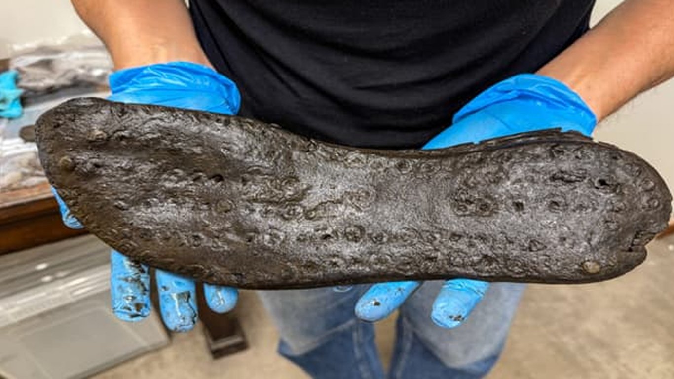 Цей екземпляр був знайдений у глибокій траншеї, відомій як "щиколодковий рів" — вузьке заглиблення навколо укріплень, створене для того, щоб сповільнити або знерухомити ворога. Саме в цьому болотистому середовищі і зберігся взуттєвий скарб: 32 черевики, від дитячих до дорослих. Проте саме "величезна" підошва стала об’єктом найбільшого подиву.
