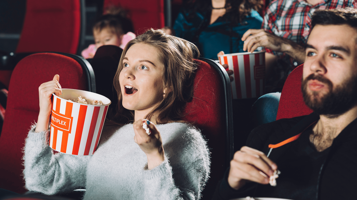 Дівчина дивиться фільм у кінотеатрі. Фото: Freepik