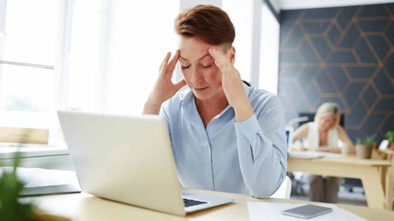 Жінка відчуває головний біль через магнітні бурі. Фото: freepik