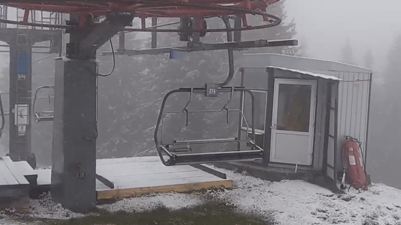 Місцеві мешканці повідомляють, що територію курорту вже вкрила тонка снігова ковдра, а температура впала нижче нуля.