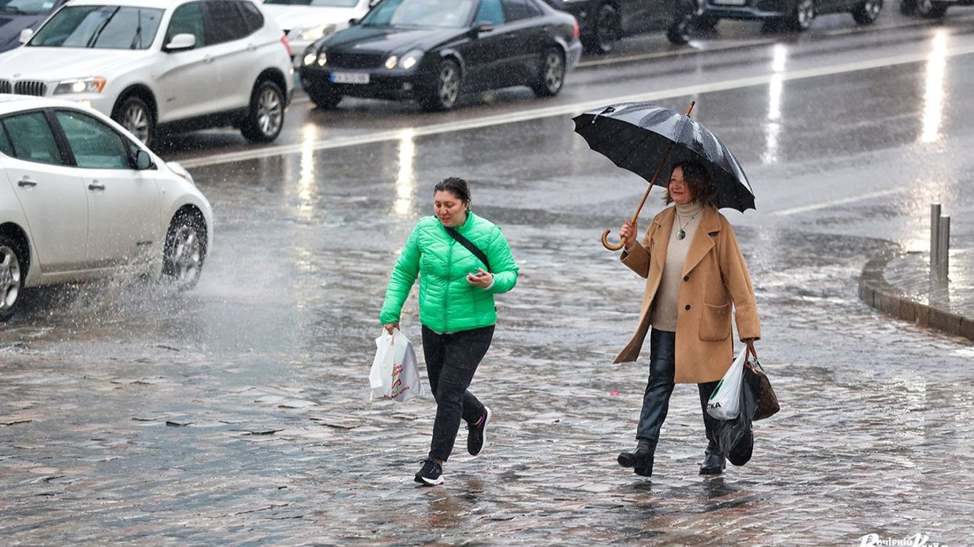 Жінки потрапили під сильний дощ. Фото: Вечірній Київ