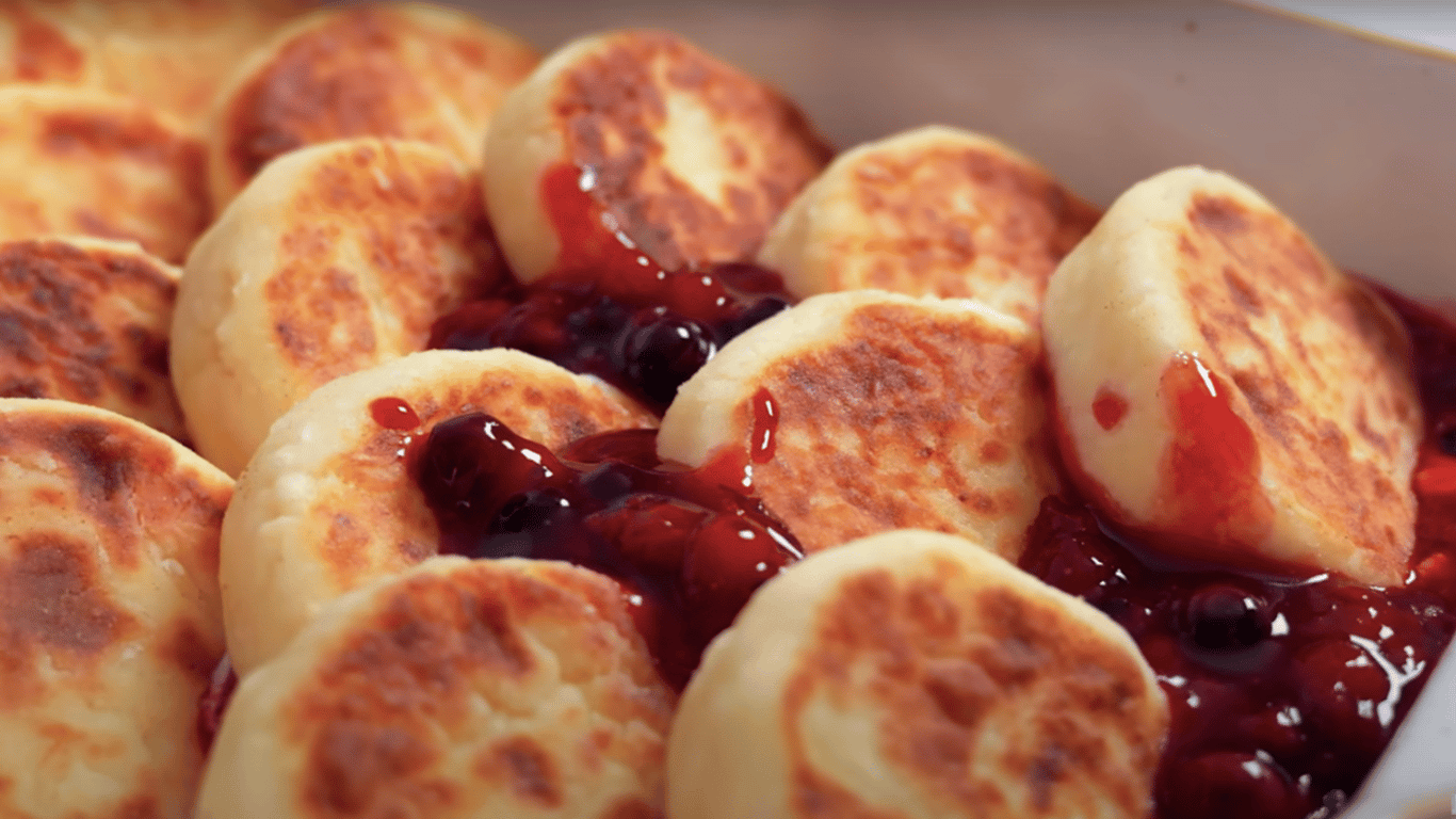 Ці сирники — не просто класика, а новий рівень ніжності. Після смаження вони просочуються ароматним сметанним і ягідним соусом, набуваючи кремової текстури. Ідеальні як для сніданку, так і для десерту без зайвих зусиль.