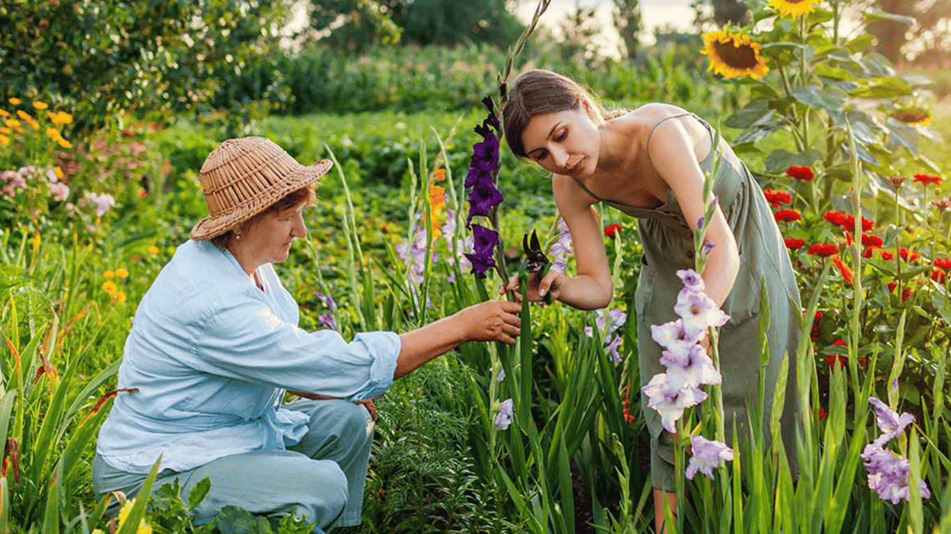 Люди ухаживают за гладиолусами. Фото: Pinterest