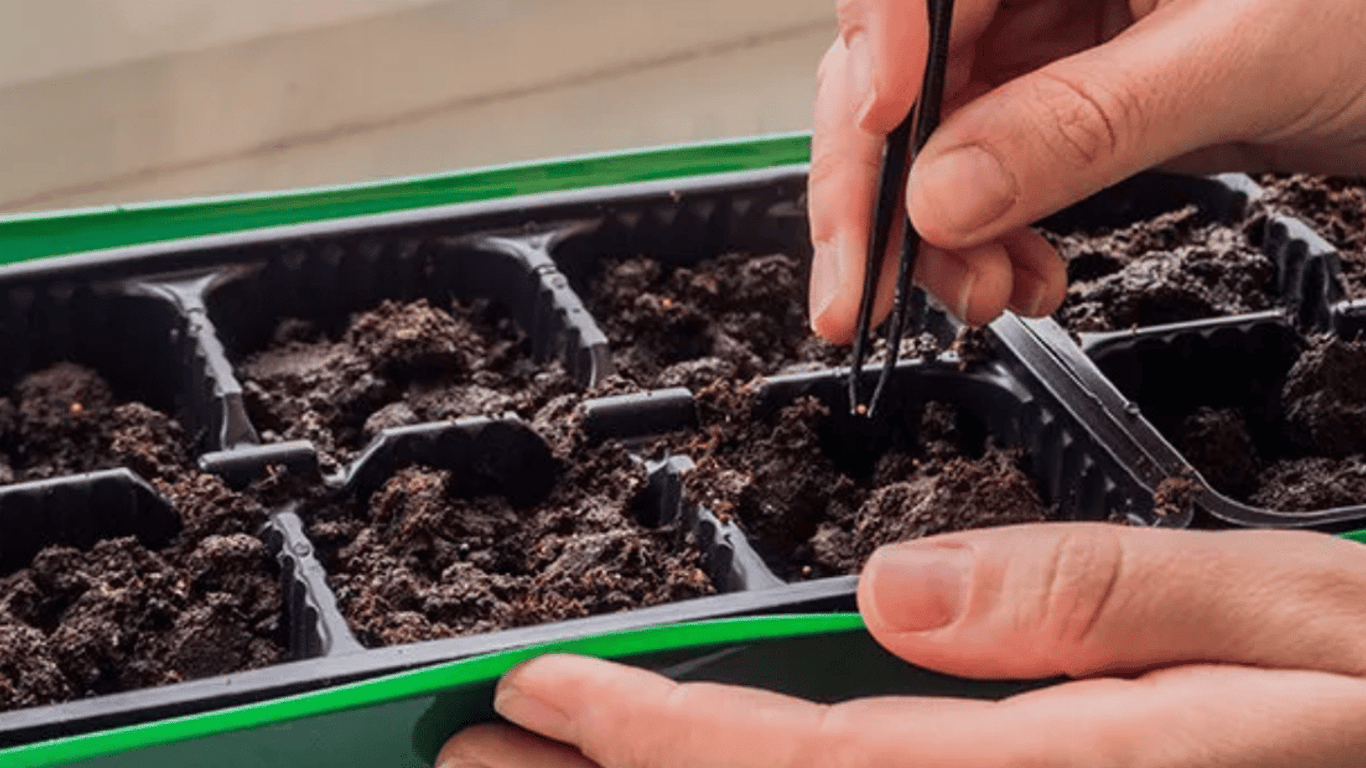 Человек сажает петунии на рассаду. Фото: Gardener`s Path