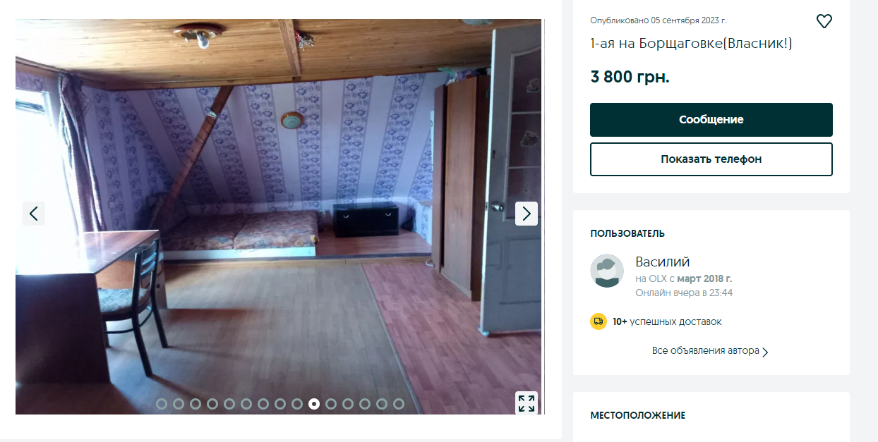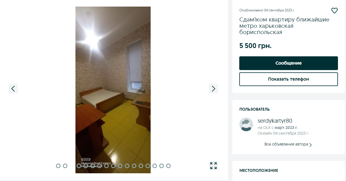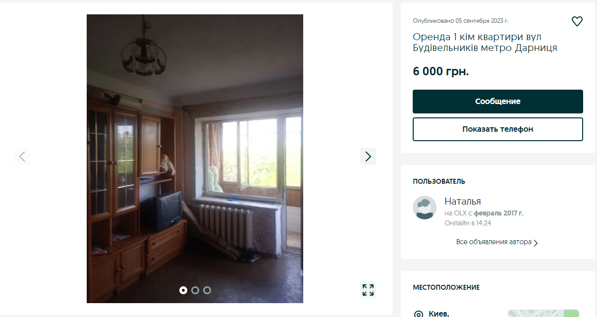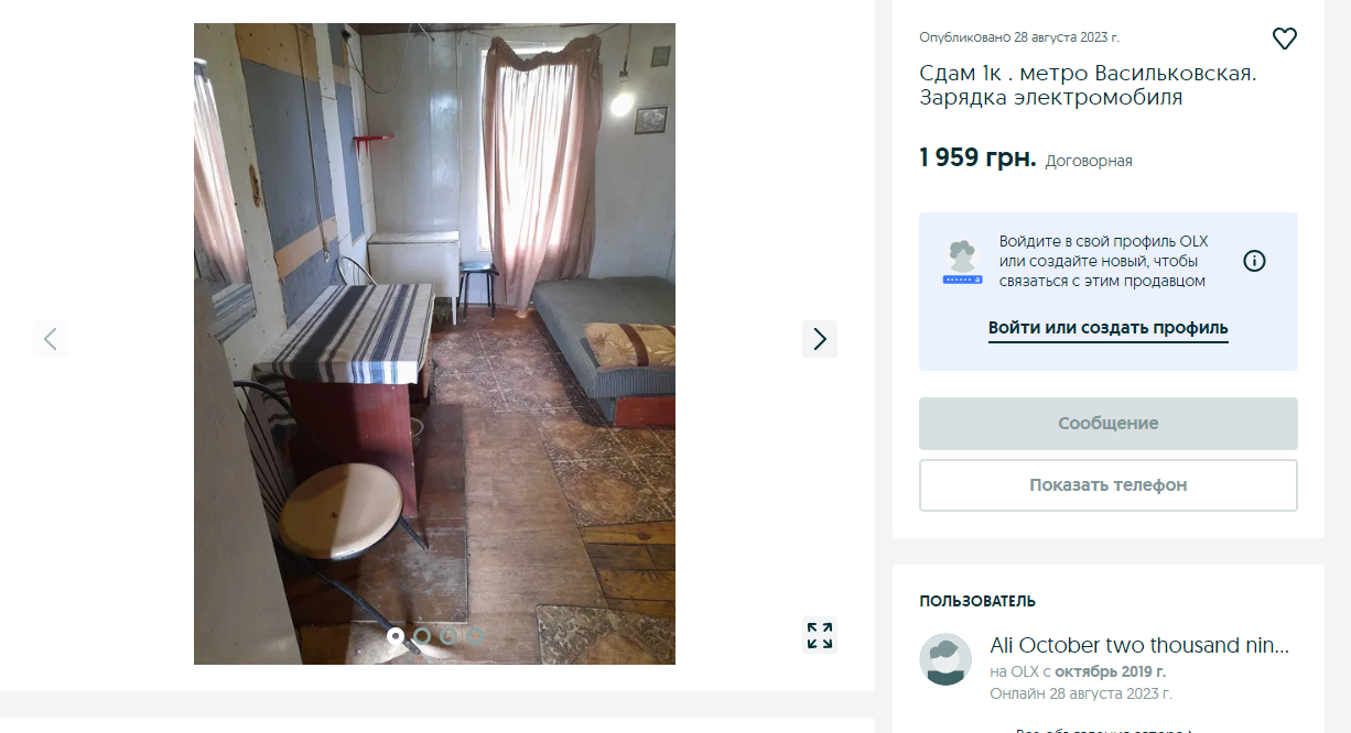 Самый дешевый вариант в нашем списке. Хотя владелец поставил цену на эту квартиру в 1959 гривен, в описании он отметил, что есть возможность снимать ее в обмен на строительно-монтажные работы. Да, это жилье не совсем приведено в порядок.