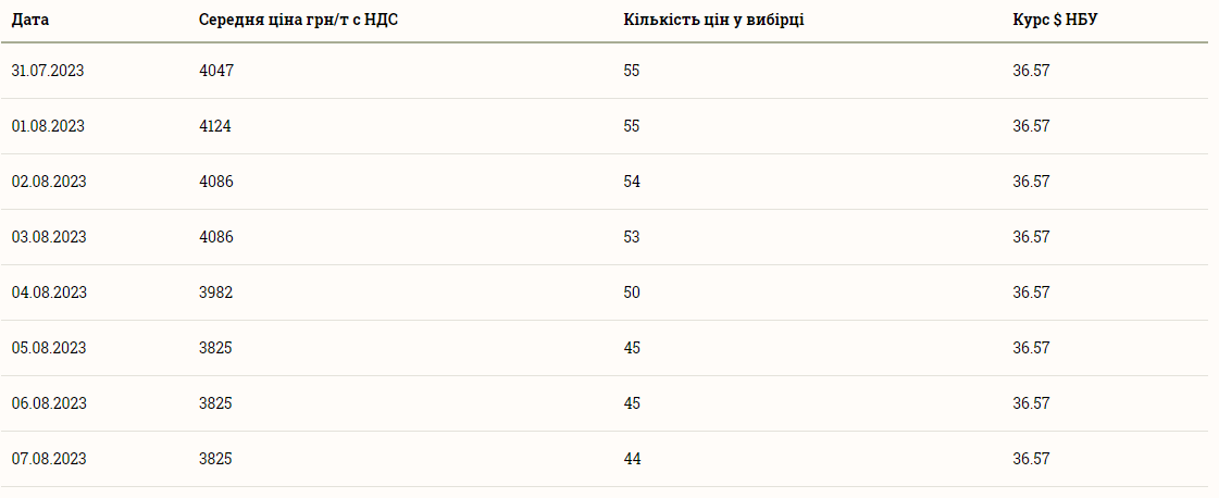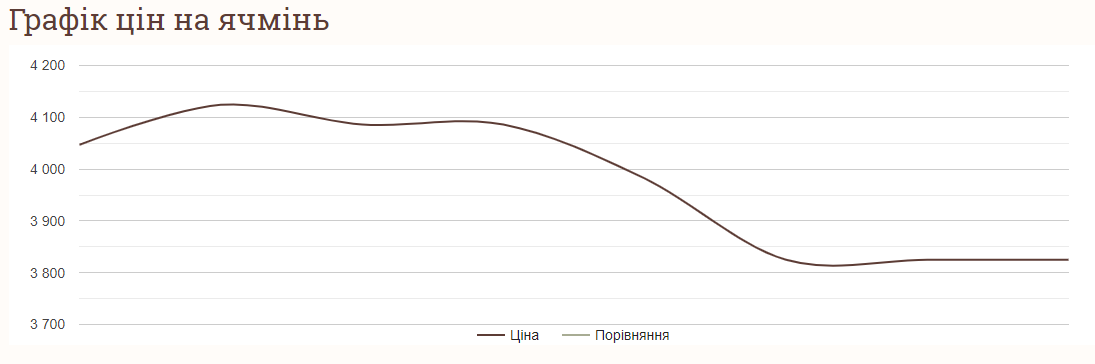 Следует отметить, что цена на ячмень за последние несколько дней значительно упала. Так, еще в прошлый понедельник, 31 июля, средняя стоимость тонны ячменя составила 4 047 грн и даже выросла до своего воскресного максимума 1 августа — до 4 124 грн за тонну. Сейчас цена на ячмень минимальна за недельный период и держится на этом уровне с субботы, 5 августа.