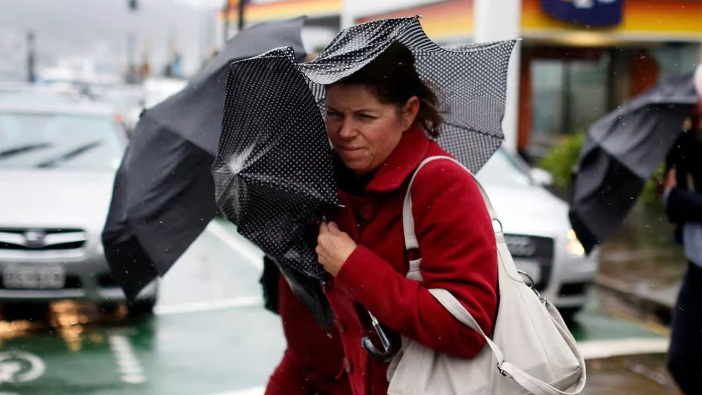 Женщина с зонтиком во время сильного ветра. Фото: Reuters