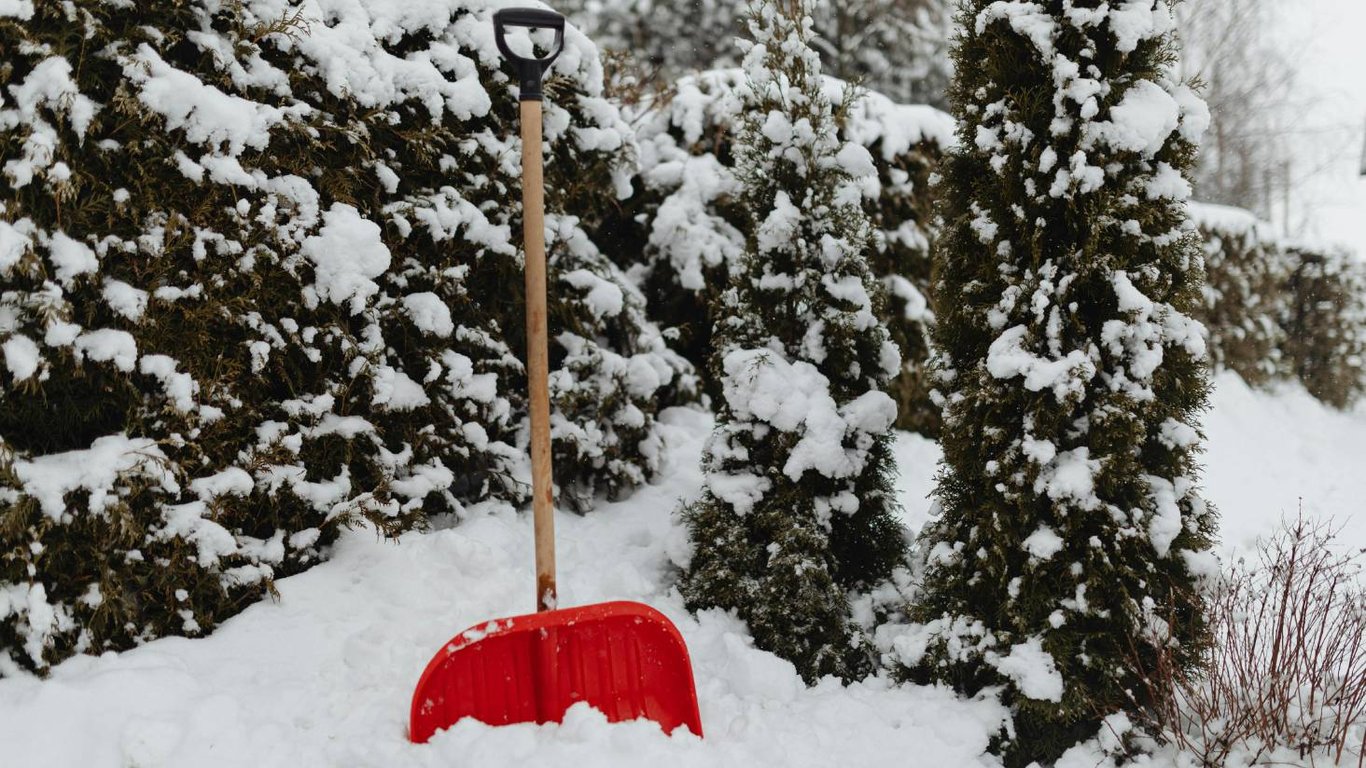 Уберите снежные "шляпы" из растений. Ведь под тяжестью снега могут сломаться ветки. Не используйте лопату, чтобы не повредить растение. Лучше воспользоваться веником или метлой.
