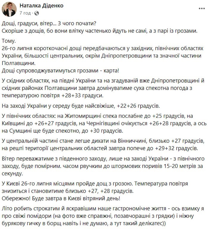 Прогноз погоды от Наталки Диденко