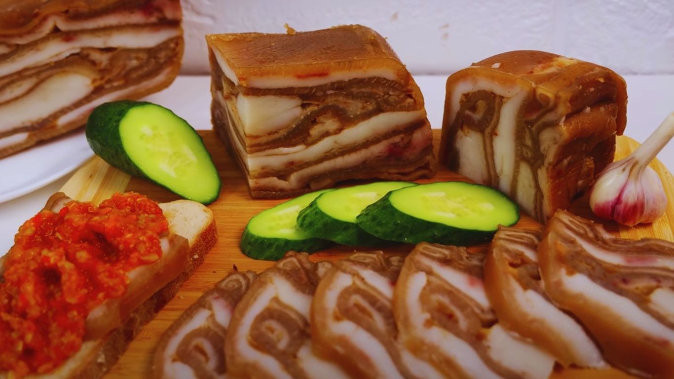 В этом рецепте пригодятся шкурки или обрезки сала. Также такие шкурки отдельно продаются на рынке.