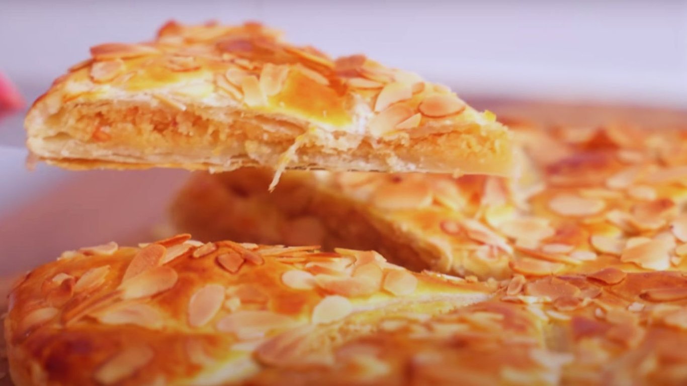 Очень вкусный и быстрый пирог из слоеного теста с миндалем