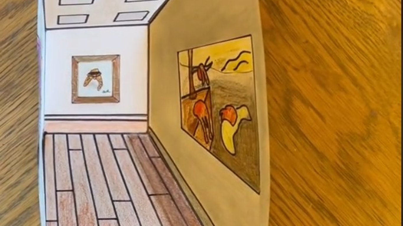 На відео зображено малюнок коридору. Коли переміщається камера, створюється враження, що малюнок стає об'ємним і виконаний у 3D-форматі.