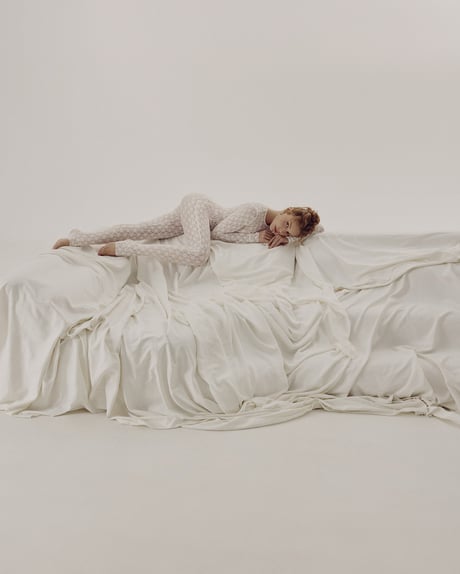 Виконавиця позувала в кадрі на білих простирадлах у відвертому вбранні. Для знімань Тіна обрала білий мереживний комбінезон, який підкреслив усі її принади.