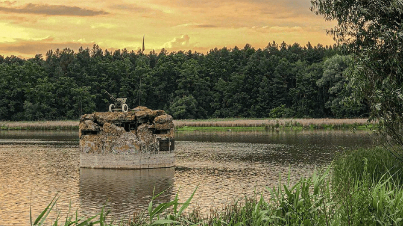 Ця неймовірна водойма була утворена в 60-х роках ХХ століття на річці Сіверка. Посеред озера розташований затоплений кулеметний ДОТ №127, створений ще у 1931 році.
