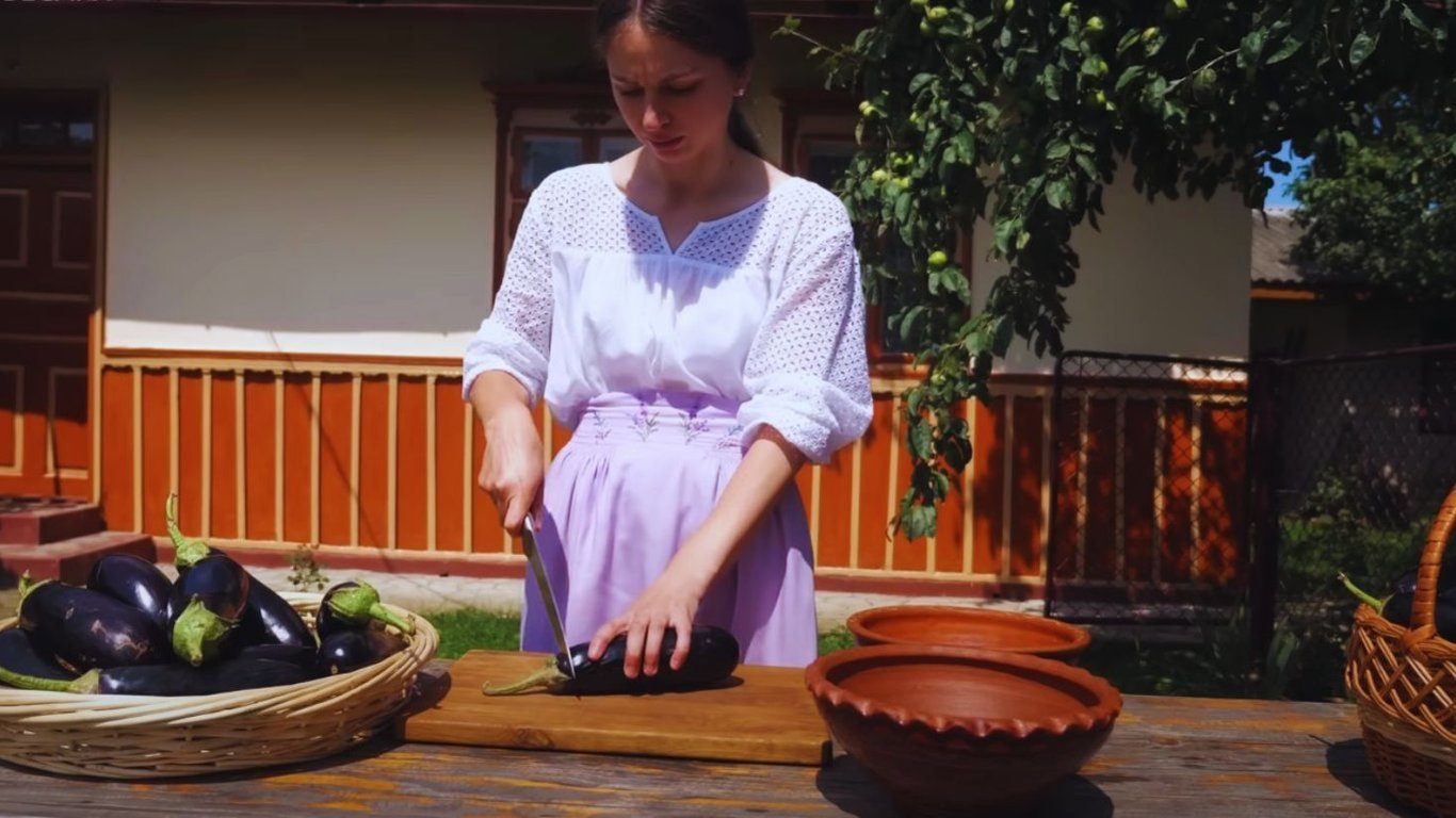 Баклажани потрібно нарізати кружальцями. Товщина кілець невелика. Занадто тонко також різати не потрібно.